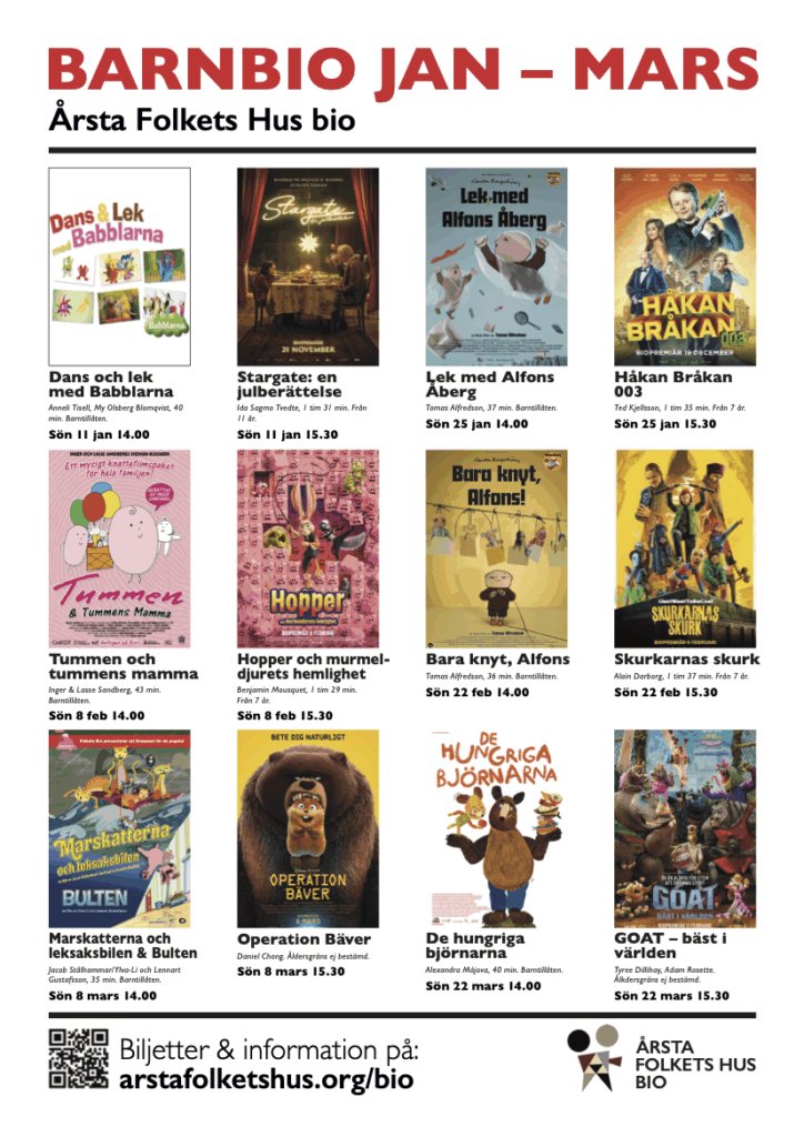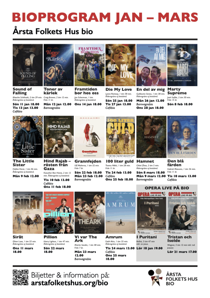 Köp i vår biljettkassa i biohuset när vi har öppet, eller maila till info@arstafolketshus.org för mer information!